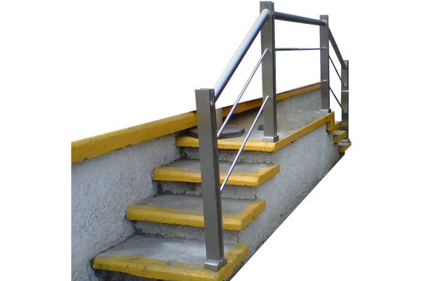Barandal Fabricado con doble solera de acero inoxidable de ½ x 3 de ancho, pasamanos de tubo de 2 de acero inoxidable, Cal. 16 y largueros de redondo macizo de 5/8 de acero inoxidable. Placa de ½ de espesor del mismo material para fijar a piso. Dim. Nos adaptamos a sus necesidades