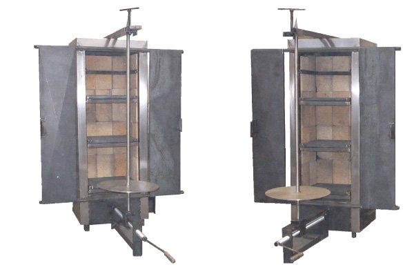 Doneraky al Carbon Fabricado en lamina de C.R. Cal. 14 con aislante de tabique refractario, con espada de 5/8 y mecanismo para diferentes posiciones de la bola de carne. Dim. 0.80X0.70X1.20 mts