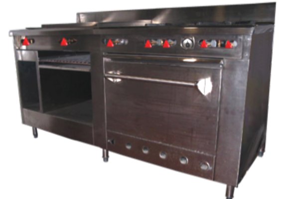 Estufa Universal MOD. EI-175-EV Fabricada en lamina de acero inoxidable CAL. 18 T/304 con quemadores de FoFo, con horno, con patas de tubo de 1½ con regatones para nivelar. Mca. Inomex DIM. 1.75X0.70X0.90 mts