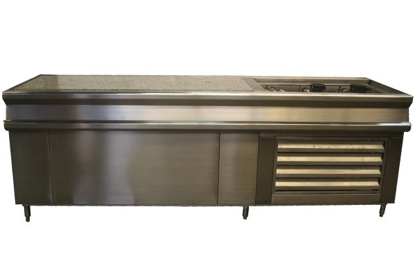MOD. BR-3-G Mca. Inomex Base refrigerada con cubierta de granito, con repisa de apoyo fabricada en lámina de acero inoxidable, Cal. 20 T/304 con unidad de ½ HP Dim. 2.50X0.70x0.90 mts