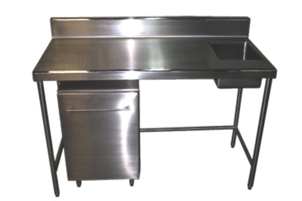 Mesa de trabajo con un cajón para conservar hielo MOD. MTC-CR-150 Mca. Inomex Fabricado totalmente en lámina de acero inoxidable, Cal. 18 T/304. Monta sobre estructura tubular de 1½ con regatones para nivelar. Dim. 1.50X0.70X0.90 mts